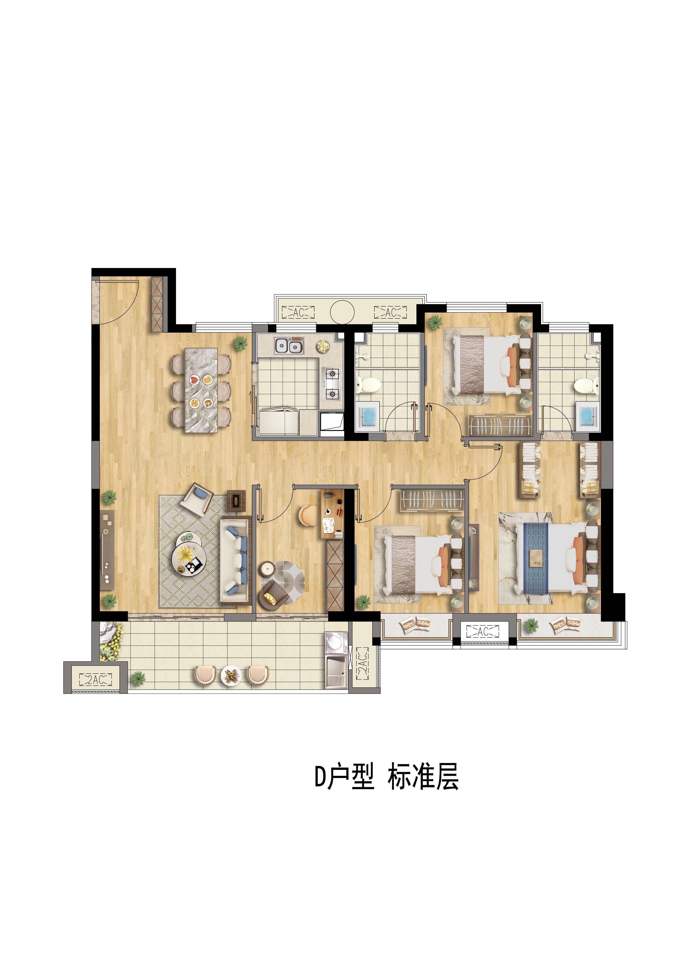 户型结构:4室2厅2卫 户型面积:128㎡(建面) ㎡